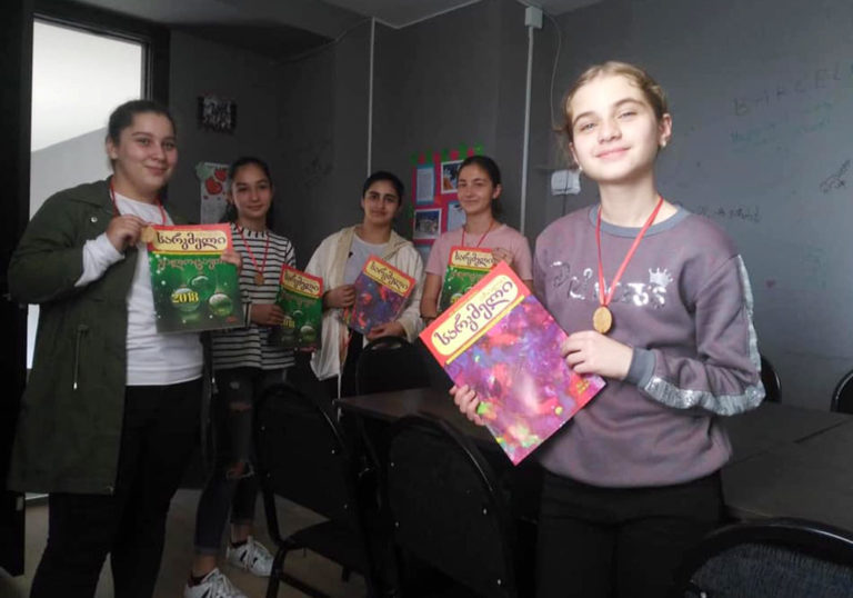 სტუმრობის დასასრულს, დაგვასაჩუქრეს ჟურნალ ,,სარკმელის” ბოლო ნომრებით და საყმაწვილო მედიაფესტივლის ,,სარკმელი 2017″-ის მედალიონებით.